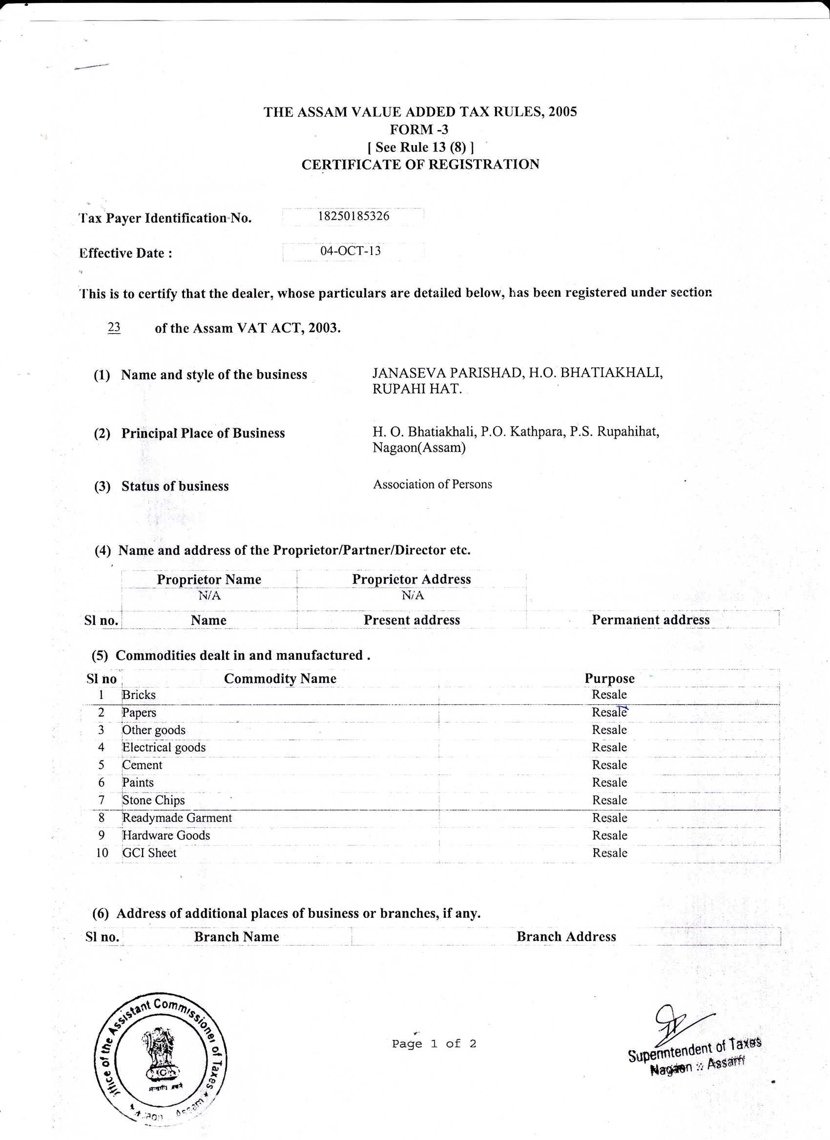 Jana Seva Parishad Conducting Social & Welfare Activities in Samaguri, Nagaon (Assam) and Working For the Upliftment of the Poor Sections